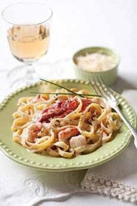 Fettuccine Alfredo is rich comfort food, made from fettuccine, ribbon-shape strands of pasta (fettucce means “small ribbons” in Italian). Wider than the other popular flat shape, linguine, fettuccine provide a better surface for catching rich and creamy sauces. (Fettuccine is similar to tagliatelle, the flat pasta from the northern Italian region of Emilia-Romagna, but is narrower. See our Pasta Glossary for more shapes.) To make Fettuccine Alfredo, the pasta is tossed with cream, butter and Parmigiano-Reggiano cheese. The cheese melts when tossed with the hot pasta, cream and butter, creating a sauce (at home, the ingredients are simply stirred on the stove top. In a restaurant, tossing at tableside is part of the experience. The original recipe was created in 1914 by Alfredo Di Lelio, owner of Alfredo alla Scrofa, a restaurant in Rome. It is simply a variation of traditional Italian recipes, fettuccine al burro (fettuccine with butter) and fettuccini al burro e panna (with butter and cream)—both served, of course, with grated Parmigiano-Reggiano. Alfredo tweaked the traditional recipe slightly. When butter is added both before and after fettuccine is put in the serving bowl for tossing, it is known as doppio burro, double butter. Di Lelio doubled the amount of butter in the bowl before the fettuccine was added, creating a triplo burro, triple butter, recipe: more butter made more of a sauce. Why? The chef created the dish to entice his pregnant wife, who had lost her appetite. He served it with egg fettuccine, hoping that the “nutritious dish” would do the trick. Today, we know that a typical serving of the “nutritious dish” has 455 calories, 38g of fat, 291mg of sodium and 143g of cholesterol. But for people who love rich, creamy food, it hits the spot! According to Musso & Frank Grill in Hollywood, the recipe for Fettuccine Alfredo was brought to America by silent film stars Mary Pickford and Douglas Fairbanks. While honeymooning in Rome in 1920, they dined at Alfredo alla Scrofa, had the dish, and liked it so much that they asked for the recipe. They brought the recipe back to Los Angeles, to Musso and Frank Grill, which had opened the year before. Not surprisingly, it became a hit (source). It became known as Fettuccine Alfredo. By the way, in Italy, fettuccine Alfredo and Alfredo sauce are not common terms. Instead, order fettuccine al burro e panna—triplo burro. In the U.S., additions proliferated: green peas, chicken, lobster and other seafood, mushrooms, sun-dried tomatoes. One of our favorites is salmon caviar. In addition to the Parmesan, you can add an extra cheese: crumbled blue cheese, for example. For something different, try these recipes: |