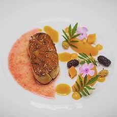 On festive occasions we serve “Foie Gras Variées,” a dinner plate comprising small amounts of different foie gras* preparations that make a luxurious course. The plate typically includes: It’s just as satisfying for those without a hunger for the duck or goose version, and much more affordable. Serve the plate with a glass of Gewürtztraminer, Late Harvest Vouvray, Riesling or Sauternes, makes guests very happy. In fact, sybarite that we are, we often serve two different wines so your guests can experience different pairings. Want some chocolate with your foie gras? Here’s a recipe for Foie Gras Served With French Toast and Spiced Chocolate Ganache, from Chef Mark Gold. Serve it as the first course of a very opulent dinner. ________________ *Foie gras is a specialty food product made of the liver of a duck or goose that has been especially fattened. Here’s more about it. †Quince is a winter fruit. Other options include a dried fruit compote, apples, figs, black cherry jam or fig jam. In the spring, we like fresh figs, gooseberries or green grapes (the smaller the better). While few of us have 50-year-old balsamic vinegar, if you have balsamic glaze (commercial balsamic vinegar boiled down to thicken it), you can add a few drops to the plate in any season. |