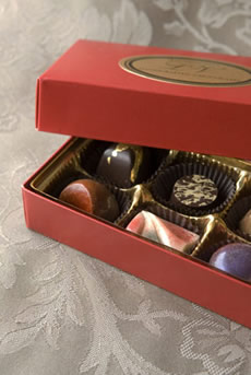 A “taste” of the flavors: caramel infused with Port and vanilla in dark chocolate, strawberry and orange blossom in white chocolate and candied orange confit and caramel ganache in milk chocolate.