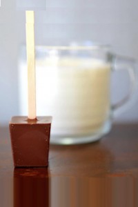 While Mom used Hershey’s or Droste’s cocoa mixes, our evolving palate led us to hot chocolate, a richer drink made from bits of shaved chocolate. With cocoa powder, half of the cocoa butter has been removed (see the difference between cocoa and hot chocolate). We’ve reviewed dozens of gourmet hot chocolate and cocoa mixes. But hot chocolate on a stick is a novelty. A block of quality chocolate is placed at the end of a Popsicle-type stick and served with a cup of hot milk (or water, which some people prefer). The fun is then to stir and stir until the chocolate melts in the milk. It takes a while, but it’s an amusing activity, every now and then. (Note: If you don’t have patience, don’t buy hot chocolate on a stick. Instead, chop, grate or shave two ounces of fine chocolate and whisk in the boiled milk.) |