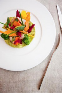 ![]() [1] Puréed cauliflower and peas topped with a bouquet of colorful, lightly-steamed vegetables (photo © Maison Kayser).