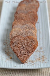 Two other departures from tradition: To help the cookies keep their shape, Ann’s recipe uses less baking powder than is usually called for. And, to reduce the risk of breakage, instead of dipping the baked cookies in cinnamon sugar they get a coating before going into the oven.