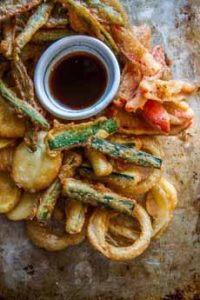 If you like tempura, there’s no need to head to a Japanese restaurant. Make it at home! It’s another way to get the family to eat more vegetables. Pack the tempura with a high ratio of veggies to proteins (3:1 or 4:1), and make it fun with as wide an assortment of vegetables as you can manage (aim for five).