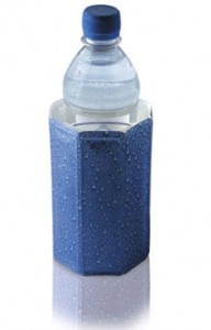 A water bottle chilling jacket makes room temperature water cold, or keeps chilled water cooler, longer. Photo courtesy Vacu Vin.