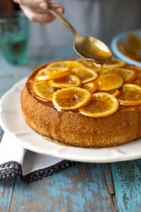 8. ARRANGE the candied citrus slices over the top of the cake, overlapping to make beautiful jeweled tiles of fruit. Drizzle some of the citrus syrup over the slices and allow it to drip down the sides of the cake. Slice and serve with crème fraîche or whipped cream/double cream.