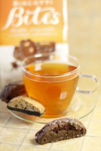 • Almond Dark Chocolate Biscotti Bites, an almond biscotti with the bottom edge dipped in dark chocolate. Classic deliciousness!