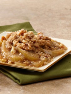 [3] An apple crisp, called a crumble in the U.K. The cooked fruit is topped with streusel crumbles (photo © Spice Islands).