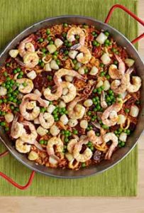 We love paella and don’t make it often enough. So when Fagor wrote to us about their paella pan and included a recipe (below) to make paella on the grill, our ears perked up. Before we get to the recipe, here’s a bit about paella, past and present. > National Spanish Paella Day is March 27th, and World Paella Day is September 20th. > The grilled paella recipe is below. > The year’s 11 Spanish food holidays celebrated in the U.S. > We begin with the history of paella. Paella (pronounced pie-AY-ya) originated in Valencia, a region on the Mediterranean (east) coast of Spain. It was originally a peasant dish, made by agricultural laborers who cooked a mixture of rice, snails, and vegetables in the fields. Cooked in a pan over an open fire. it was a communal dish, eaten directly from the pan with wooden spoons. Valencianos who lived closer to the coast added local eel plus butter beans (lima beans). Paella is the type of dish that lends itself to adding whatever you have on hand, so can change seasonally. Recipes thus evolved in many directions. The paella we know today—saffron rice mixed with chorizo, chicken, and seafood—did not evolve until the late 18th century, when living standards rose affording the use of more expensive ingredients—especially saffron, the world’s costliest spice. It’s easy to vary the ingredients to create any type of paella, including vegetarian and vegan recipes. But three main styles developed in the 19th century: Artichokes and tomatoes replaced runner beans in the winter. Spices included garlic, pimentòn (sweet paprika), rosemary, saffron, and salt. The dish was cooked in olive oil. The recipe continued to evolve as chorizo, green peas, olives, and roasted red pepper found their way into the dish. We’ve seen recipes with chopped chard or escarole, eggplant, fennel, mushrooms, olives, onion, piquillo chiles, red or green bell pepper, snow peas, tomatoes (fresh diced or roasted), and seasonal (spring asparagus and winter squash, e.g.). Some cooks garnish the top of the paella with sliced hard-boiled eggs and lemon wheels. The cook’s favorite ingredients were sure to be included. The chef at Soccarat, a group of tapas and paella restaurants in New York City, devised a paella menu that includes: |