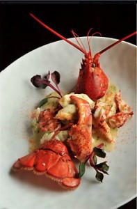 The photo shows Restaurant R’evolution’s Lobster With Sheep’s Milk Gnocchi. Rather than toss the lobster heads and tails*, they plated them with a dish of lobster gnocchi. Instead of gnocchi, we made Lobster Newburg, one of our favorite special-occasion dishes (in a cream sauce with sherry, brandy and a touch of nutmeg—and the heads and tails as decoration. Here’s the Lobster Newburg recipe). It’s beautiful (photo #1), and the most fun we’ve seen since Chef David Burke’s Angry Lobster On A Bed Of Nails (photo #2). But there’s much more to place between the heads and tails. Just a few ideas: Just set the head and tail flat on the plate. And keep recycling: At the end of the meal, you can wash the heads and tails and stick them in the freezer. |