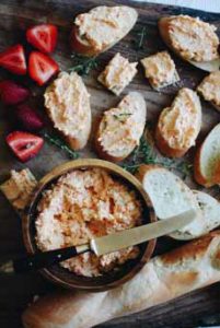 We’re having a spread cocktail party. It’s not a Christmas/holiday party: We’re deliberately doing something different. There will be no cheese ball covered with bright red pomegranate arils, no eggnog scented with nutmeg, no holiday cookies. Just spreads. In fact, we’re calling them cocktail spreads, since we’ll be serving them with wine and cocktails. It’s not that we’re anti-Christmas; it’s just that we’ll be eating all the traditional seasonal party foods at everyone else’s parties. A spread is a food that is literally spread, generally with a knife, onto bread, crackers or similar foods. The bread serves as a base to enjoy the flavorful spread. Spreads are distinguished from dips, which are not spread onto a food but but have food dipped into them instead. Spreads are thicker, dips are tinner. Spreads can be made from We we’ll be serving a dozen choices from this master list. Make a selection of different colors and intensities (mild to pungent). Set everything out buffet-style. Fortunately, we’ve got lots of bowls, and baskets for the different breads, toasts and crackers (the most interesting ones we can find). There will be gluten-free crackers and crudités for the carb-averse. And for those who need something more “substantial,” there will be a honey baked ham with honey mustard, and a poached salmon with yet another spread: sour cream and dill. Now for the tough work: cutting down the list of spreads to pick an interesting collection. |