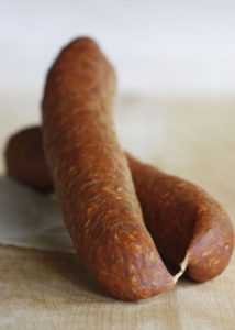 September 20th is National Pepperoni Pizza Day, and we have a surprise for you: Pepperoni is a cured dry sausage from…not from Italy! While there are a number of spicy, dry sausages from different regions of Italy, there is no such thing as pepperoni. For the authentic Italian sausages that inspired it, take a look at soppressata, from Apulia, Basilicata and Calabria; and salsiccia Napoletana piccante, from Naples. More than a few foods we think of as authentic Italian are actually Italian-American, such as: TIP #2: Treat yourself to some super-premium pepperoni. Check out the producers below. > The year’s 16 pizza holidays. > The year’s 16 sausage holidays. > Different types of pizza: 40 ways to eat your slice. Although we can’t point to its origin, pepperoni seems to first appear in the U.S. the early 1900s, when Italian-American butcher shops made a variety of sausages. The first known print reference appears in 1919 [source]. If you see the word peperoni in Italian (with a single “p”), it’s actually the word for bell peppers. Perhaps the name for the the red-hued, paprika-spiced sausage was inspired by red bell peppers; we just don’t know. We do know that in Italian, there is no word related to peperoni that indicates anything but those peppers. The pepperoni sausage that we eat in America (with two “p’s”) is an American creation. Traditionally made from a combination of finely-ground pork and beef, it’s a cured meat variation of salami that is made by combining finely-ground pork and beef, seasoned with cayenne, garlic, fennel, mustard seeds and/or paprika, and stuffed into a casing. (Halal/kosher pepperoni is all beef, and there is also turkey “pepperoni.”) Pepperoni was created by Italian-American butchers about a century. No one can pinpoint when and where, but it was available at the beginning of the 1900. “Pepperoni” was first mentioned in print in the U.S. Government’s Yearbook of Agriculture in 1894, called “a dry sausage.” It was not until the World War I that the word came into common use for a sausage†, within Italian-American communities. The first known use of the word in print in New York City is in 1919 [source]. Different producers use different levels of spices, that can include fennel seeds, garlic, hot chiles or cayenne, mustard seeds and/or paprika. The sausages are then air-dried (cured). The result: a lightly smoky, sausage, relatively soft and reddish. The red color is provided by the paprika and any other type of chile (e.g. cayenne), plus the sodium nitrite used as a curing agent. Pepperoni is the most popular pizza topping in the U.S.: More than 35% of all pizzas ordered are topped with it* (source). However, pepperoni pizza as we know it is almost never served in Italy, except, perhaps in tourist areas [source]. Pepperoni has a tendency to curl up from the edges in the heat of the pizza oven, called “cupping” in the business. The thicker the slices, the more the edges curl. Under the heat of the oven, the slices give off slicks of orange grease. Pepperoni sausages are commonly sold in two sizes: an inch in diameter for pizza and two to three inches in diameter for sandwiches. You can buy whole “sticks,” slices, even chopped. If your palate seeks something beyond supermarket pepperoni, check out: *The “Top 10” pizza toppings, in order: pepperoni, mushrooms, onions, sausage, bacon, extra cheese, black olives, green peppers, pineapple spinach [source]. |