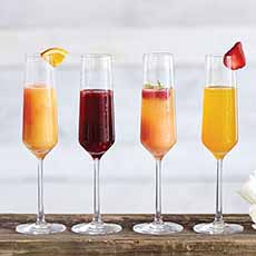 [1] A Mimosa with orange juice, plus Pomegranate, Pink Grapefruit and Mango Mimosas (photo © Pampered Chef).