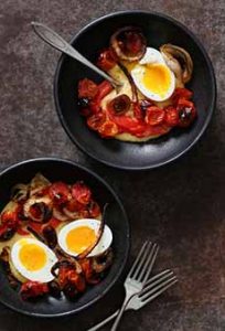 Polenta, made from ground cornmeal, is a porridge that dates to ancient times. It is gluten free, although not a whole grain*. This traditional Italian cornmeal style originated in Umbria in northern Italy, where it was a simple, hearty peasant food. In the U.S. and U.K., cooked polenta is known as as cornmeal mush. Polenta has risen from its humble roots, and is now used by top chefs. Not only a versatile ingredient in Italian cuisine, it has crossed over to the world of fusion food. Polenta is sold in two ways: Polenta can be served at breakfast, lunch and dinner: Think of polenta bowls as you would any grain bowl or vegetable bowl: food that can be served at any time of the day. The following recipe tops creamy polenta with Parmigiano-Reggiano cheese, roasted vegetables and “jammy” soft boiled eggs. Use this template to create your own, custom, polenta bowl. Jammy eggs have become popular with chefs in recent years. They’re an oxymoron: a well-cooked soft boiled egg. You can think of them as halfway between soft boiled and hard boiled. Here’s a recipe. The recipe for this yummy bowl of comfort food is courtesy of DeLallo, online purveyor of fine Italian products. Ingredients For 2 Servings 1. PREHEAT the oven to 400°F. Line a baking sheet with parchment paper. 2. COMBINE the cherry tomatoes, onion, salt and pepper in a large bowl. Toss well to coat and spread evenly on the baking sheet. Roast the vegetables in the oven for 25 minutes, stirring twice. Meanwhile… 3. BRING a large saucepan of water to a boil over medium-high heat. Using a slotted spoon, carefully lower the eggs into the water, one at a time. Cook the eggs for 6 minutes, adjusting the heat to maintain a gentle boil. Transfer the cooked eggs to a bowl of ice water and chill. 4. BRING the water, broth and butter to a boil in a medium-sized saucepot. Slowly whisk in the polenta, stirring continuously until it begins to thicken, about 1 minute. Remove from the heat and stir in the cheese. Heat the roasted red peppers for 45 seconds in the microwave. 5. DIVIDE the polenta into two bowls. Top with the roasted tomatoes and onions and roasted red peppers. 6. GENTLY CRACK the eggs all over and peel. Slice them in half and place 2 halves in each bowl. Sprinkle with additional cheese if desired and serve. |