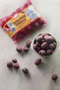 Baby gold potatoes, ready to peel the day before (photo © Melissa’s Produce).