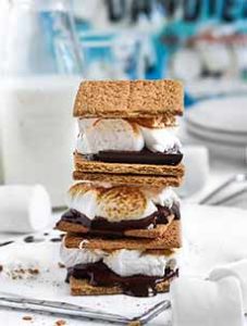 Need a special gift? Want a special treat? We recommend the Gourmet S’mores Kit (photo #1) from L.A. Burdick, one of America’s finest chocolatiers. It’s a limited edition: a summer special, available from June 1st to September 2nd. We’ll be ordering several for our own summer festivities and for Father’s Day gifts. You get high-end classic s’mores components, handmade with all natural ingredients and no artificial colors, flavors, or preservatives. Instead of extracts, for example, the flavors come from real vanilla beans, fruits, coffee and honey. Everything in the kit is handmade in-house: Head to BurdickChocolate.com. The classic s’mores cookie sandwich is perfect as is: graham crackers sandwiching toasted marshmallows melty chocolate. Because the classic is so beloved, amateur and professional cooks alike have put their own spins on the recipe. Here are some s’mores recipes with twists that we’ve published. They’re just a smattering of the thousands of s’mores recipes out there. |