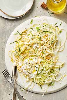 [6] While mushroom carbonara is earthy and woodsy for fall, here’s a summer squash carbonara that’s light and lifting for warmer months, with zucchini, chives, and burrata. Here’s the recipe.