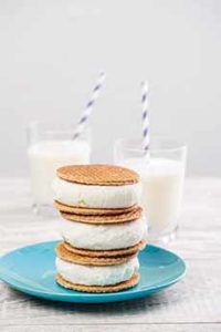 • A replacement for graham crackers in s’mores: two cookies with a filling of chocolate and marshmallows.