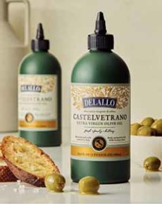 DeLallo’s Castelvetrano Extra Virgin Olive Oil is packaged in a convenient squeeze bottle, inspired by chefs.