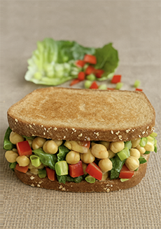We never would have thought to make chickpea salad as a sandwich filling. But as we were considering lunch options a couple off days ago, we recalled that it was National Chickpea Day, and that we had this recipe to try from the Grain Foods Foundation. It took just 5 minutes to chop and mix; toasting the bread was the most time-consuming part. The recipe specifies whole wheat bread, but we’ve switched from whole-grain to Ezekiel bread (photo #2), which is not only more flavorful, but even better for you. > The top 10 sources of protein (which include chickpeas), below. > The history of chickpeas and how the chickpea got its name. > Are chickpeas peas or beans? > The different beans, grains, legumes: a photo glossary. > The difference between legumes, pulses, and beans. 1. COMBINE the chickpeas, mayonnaise and lemon juice in medium bowl and mash with fork. 2. STIR in the celery, scallion, curry powder, and bell pepper. Season to taste with salt and pepper. 3. LAYER lettuce leaves and chickpea mixture between slices of toast. Most people think of bread as carbs, and they’re right. But Ezekiel bread is almost a miracle: It’s bread that’s also a high quality protein† and a powerhouse of nutrition, including all the amino acids and/including omega 3 and 6 essential fatty acids that are vital to health and body function. We first discovered Ezekiel 4:9® Sprouted Flax Bread (photo #2) when we created THE NIBBLE’s Bread Glossary. Traditionally Ezekiel bread was enjoyed by people who pursue a healthy diet. They had to bake the bread or buy it in health food stores. We, however, think that Ezekiel bread is ready for the mainstream: for the bread basket, sandwiches and toast. Ezekiel bread is a healthful, exceptionally nutritious bread made from a combination of sprouted grains and legumes: barley, beans, lentils, millet, spelt and wheat. Depending on the recipe, flax and other seeds can be included. Each baker can tailor his/her own recipe. The name and the ingredients come from Ezekiel 4:9 in the Old Testament: “Take also unto thee wheat, and barley, and beans, and lentils, and millet, and spelt, and put them in one vessel, and make bread of it….” Ezekiel 4:9 bread, called Ezekiel bread for short, is rich in protein, vitamins, minerals, amino acids and natural fiber with no added fat. Think of a delicious whole grain loaf, amped up. Anyone who enjoys a flavorful piece of bread will love it. Food For Life is a company that makes traditional Ezekiel 4:9 sprouted whole grain bread (photo #2) as well as variations: Cinnamon Raisin Flax (flourless, gluten-free and delicious), Low Sodium Sesame, and other sprouted grain breads including Genesis 1:29® Bread (see below). Their Ezekiel bread is low-glycemic, diabetic-friendly, pH-balanced and kosher-certified. Each thick slice has 80 calories and contains 90mg of omega 3, 5g of protein, 4g of dietary fiber, 0g sugar and 18 amino acids. The breads are all natural, made with filtered water, and are free of additives and preservatives, added fat, or artificial flavors and colors. They are certified organic by Quality Assurance International (QAI). When the six grains and legumes are sprouted and combined, a complete protein is created that closely parallels the high quality protein found in eggs and other high-protein foods (photo #7). In fact, Ezekiel bread is 84.3% as efficient as the highest-recognized source of protein, egg (see the chart, image #8, below). Through an exclusive sprouting process, enzymes are activated and cause the grains to become living and nutrient-dense while enhancing digestibility. The combination of the 6 grains, legumes and seeds creates a complete protein containing all 9 essential amino acids. The ingredients reduce the calories and carbohydrates found in the original grains. Unlike commercial breads that are “enriched” and “fortified” to restore vitamins and nutrients that are lost during processing method, Ezekiel 4:9 Sprouted Flax Bread is naturally flavorful and nutritious. Genesis 1:29 Bread has a cornucopia of seeds and grains, inspired by Genesis 1:29††: “Then God said, ‘I give you every seed-bearing plant on the face of the whole earth and every tree that has fruit with seed in it. They will be yours for food.’ ” If the mix from Food For Life doesn’t contain “every seed-bearing plant on the face of the whole earth…,” it sure has good number of them†. As you can imagine, it’s a highly nutritious loaf. Go Biblical with your bread. You’ll be healthier for it—and happier too, with these great-tasting loaves. |