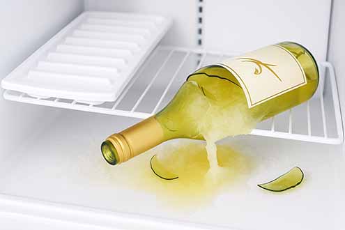 [12] As the water component in wine turns to ice, it increases in volume, which puts pressure on the bottle that nost wine bottles can’t withstand. It can cause the cork to pop out, or the bottle to crack or even explode.