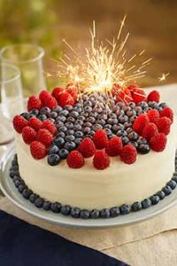 Here’s a red, white and blue cheesecake that you can really celebrate on July 4th: You don’t have to turn on the oven. This no-bake dessert sets in the fridge. By the way, there are numerous patriotic holidays where red-white-and-blue desserts fit right in. See the footnote†. The recipe follows, but first: > The history of July 4th holiday. > The year’s 16 cheesecake holidays. This recipe is by Joyce Mummau of Sugarcreek, Ohio. It was tested by the Taste of Home Test Kitchen and shared with us. Unlike baked cheesecakes, the recipe is egg-free so the texture is much lighter, perfect for summer. You can also turn the filling into “cheesecake pudding” or trifle, without the crust. The cheesecake can be stored in the fridge for 4 days, or in the freezer for up to 3 months (instructions in the footnote*). Prep time is 20 minutes, plus overnight refrigeration. 1. MIX the cracker crumbs, brown sugar, and cinnamon in a small bowl. Stir in butter. Press onto bottom and 1 inch up the side of an ungreased 9-inch springform pan. Refrigerate for 30 minutes. 2. BEAT the cream cheese, sugar and lemon juice in a large bowl, until smooth. Gradually add the heavy cream a bit at a time; beat until stiff peaks form. 3. TRANSFER the mixture to the crust. Refrigerate, covered, overnight. When getting ready to serve… 4. GENTLY TOSS the berries and sugar in a bowl. Let them stand until juices are released from berries, 15-30 minutes. 5. REMOVE the cheesecake from the pan, first using a knife to loosen the sides. Then remove the rim. You can either present the whole cheesecake topped with berries, or cut plain individual slices and then top with the mixed berries. Instead of fruit, top the cheesecake with lemon curd, drizzled chocolate or caramel, crushed cookies (Oreos, Biscoff, gingersnaps), crushed brittle or toffee, caramel corn or candied nuts, even edible glitter in the theme color(s) of the occasion. Or, for an adults-only dessert, marinate the fruit in orange liqueur (Cointreau, Grand Marnier, Triple Sec, etc.). |