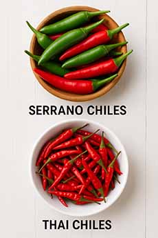 FOOD 101 You can tell by looking at the stalks (photo #5) that sugarcane and bamboo are related. They are both members of the grass family, Poaceae, which includes other important plants such as corn, rice, and wheat (all of the cereals are grasses). Sugarcane’s genus and species are Saccharum officinarum, while bamboo belongs to a subfamily, Bambusoideae, and comprises numerous genera and species. Saccharum has additional, wild, species, but the one cultivated for consumption is Saccharum officinarum. *While this may seem like a lot of sugar, the rest of the ingredients are so low in calories that a 3/4 cup is 99 calories. Coleslaw also contains some sugar, and a 3/4 cup serving of coleslaw made with mayonnaise typically contains between 200 and 280 calories. **Granulated sugar, as a common household item, became prevalent in Europe during the 18th century. While sugar available earlier, it was a luxury item for the wealthy. The increased production from sugar plantations established in the Caribbean and Brazil, coupled with advancements in refining techniques, led to a significant price drop and wider availability. By the 1800s, it was becoming a staple on most tables. †A nonreactive bowl is one made from materials that do not interact with food, particularly acidic ingredients like tomatoes, citrus fruits, vinegar, and wine. This prevents the food from developing a metallic taste. Nonreactive materials include ceramic/enamel, glass, plastics [those sold for food preparation], and stainless steel. Always use these materials when preparing or serving citrus-based desserts, guacamole, salad dressings, and sauces with acidic ingredients. Reactive materials to avoid include cast iron and aluminum. ††Slaw is a type of salad, typically made with shredded cabbage and a creamy or vinegar-based dressing. While all slaws are salads, not all salads are slaws. Salads can have a wide variety of ingredients, dressings, and toppings, while slaw generally indicates a salad with shredded cabbage as a primary component. ‡The heat component of chiles, capsaicin, is contained in the seeds and the ribs. Medium: Serrano peppers: If you’re looking for a less heat, Serranos typically range from 10,000 to 25,000 SHU. The green chiles are milder than the ripe red ones. Hot: Bird’s eye chilies, a type of Thai chile, typically measure between 50,000 and 100,000 Scoville Heat Units (SHU) on the Scoville scale. Hotter: Chiltepin peppers, while innocent-looking tiny rounds, can reach up to 100,000 SHU. Habaneros are significantly hotter, ranging from 100,000 to 350,000 SHU. CHECK OUT WHAT’S HAPPENING ON OUR HOME PAGE, THENIBBLE.COM. |