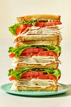 We’re celebrating National BLT Day today, July 22nd, with the Cheddar, bacon, and tomato for lunch and a luxury version, a lobster BLT with Gruyère, for dinner. Which got us to thinking: Is the BLT our favorite sandwich? Actually, its big brother, the club sandwich, topped with turkey or chicken—has an edge. So we decided to see what the rest of the country prefers. The Top 10 sandwiches in America follow. But first: > The different types of sandwiches: a photo glossary. > The year’s 25+ sandwich holidays. > The history of the sandwich. > The history of the grilled cheese sandwich is below. We looked at several surveys, which, as is common varied somewhat. Here’s one compiled by 24/7 Wall St. Note that the BLT, Club, and Bacon sandwiches have close kinship: While we may have our own definitions, by the textbook a BLT is a simple sandwich, usually consisting of just bacon, lettuce, and tomato with mayo between two slices of bread. The club sandwich adds a layer of turkey or chicken on toasted bread. It can be a single or “triple decker.” The Top 10 Sandwiches 1. Grilled Cheese (photo #1) 2. Grilled Chicken (photo #2) 3. Turkey (photo #3) 4. Roast Beef 5. Ham 6. BLT 7. Club 8. Bacon Sandwich 9. Peanut Butter & Jelly 10. Pulled Pork The bread. The earliest form of bread was flatbread made from wild grains and tubers ground into flour, mixed with water, and baked on hot stones. The eastern evidence is ca. 12,400 B.C.E. (predating agriculture!) in what is now Jordan. There was widespread flatbread use from 7000 to 6000 B.C.E. By 2000 B.C.E., flatbread became common across Near East as well. The first leavened (risen) bread likely emerged around 3,000 B.C.E. in ancient Egypt, via contact between the flatbread dough and wild yeast. By the Roman era, 100 B.C.E.–400 C.E., wheat bread was a staple. > The history of bread to modern times. Cheese appears, ca. 7000–6000 B.C.E. The earliest evidence has been found in Neolithic pottery in Poland. The process of cheese making, involving fermenting milk to separate curds and whey, was possibly discovered accidentally when milk was stored in animal stomachs (animal stomachs and bladders were employed as containers in ancient times). Stomachs contain the rennet enzymes necessary to create the curds that are pressed into cheese. While archaeologists have yet to find the smoking gun (or smoking pottery, as it were), around 6000–5000 B.C.E., in Mesopotamia or the Fertile Crescent, people could plausibly have eaten cheese with flatbreads or early forms of grain cakes. Sumerians (ca. 3000 B.C.E) and Egyptians (ca. 2000 B.C.E.) both produced cheese. By the time of the Greeks and Romans, cheese was widely made and even aged for texture and flavor. In ancient Rome, bread and cheese were a common soldier’s ration. > The history of cheese. The concept of combining bread and cheese dates back thousands of years. Ancient Romans reportedly enjoyed bread grilled with cheese, though not in sandwich form. Welsh rarebit (rabbit) originated in Britain, possibly as far back as the 14th century (the earliest printed record dates to 1725). Melted cheese was poured over a slice of toasted (presumably stale) bread. The sandwich was invented on the fly in 1762, to make it convenient to eat while at the gambling table (the history of the sandwich). Sometime in 18th-century Switzerland, the practice of dipping bread in melted cheese—fondue—appeared. It is believed to have been created as a way to use stale bread. The Swiss also created raclette, melted cheese served with boiled potatoes, crusty bread, cornichons, and usually a variety of proteins and vegetables. Needless to say, where ever there was bread and cheese, they were eaten together in some form or other. Take a look at: You have to cross the ocean for modern grilled cheese—melted cheese between two slices of bread—which was created in the U.S. in the 1920s. 1920s: It was made possible thanks to two key inventions, beginning in the 1920s: 1940s: During World War II, mess halls served “American cheese filling sandwiches,” usually toasted, to U.S. soldiers. The name “cheese dream” was sometimes used, especially when the sandwich was topped with extras like bacon or tomato and served hot and open-faced. |
